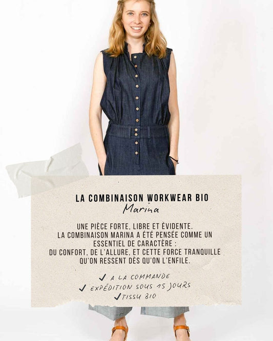 Combinaison workwear élégante en Denim Bio Marina - ICONIQUE