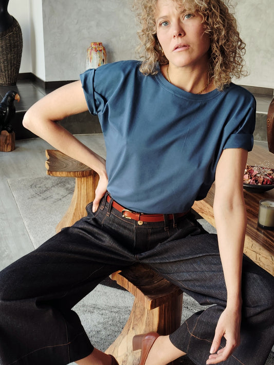 Tee-shirt Louise bio gots BLEU - ICONIQUE