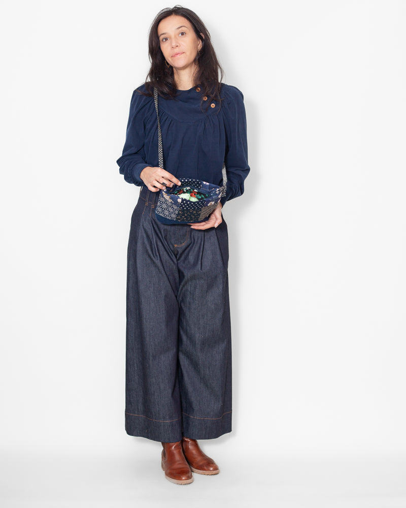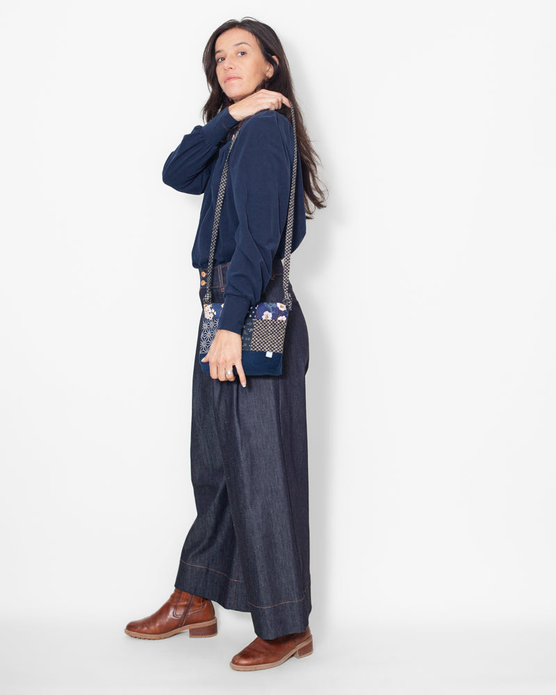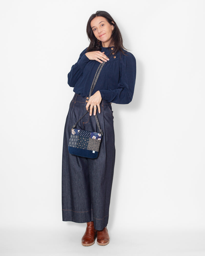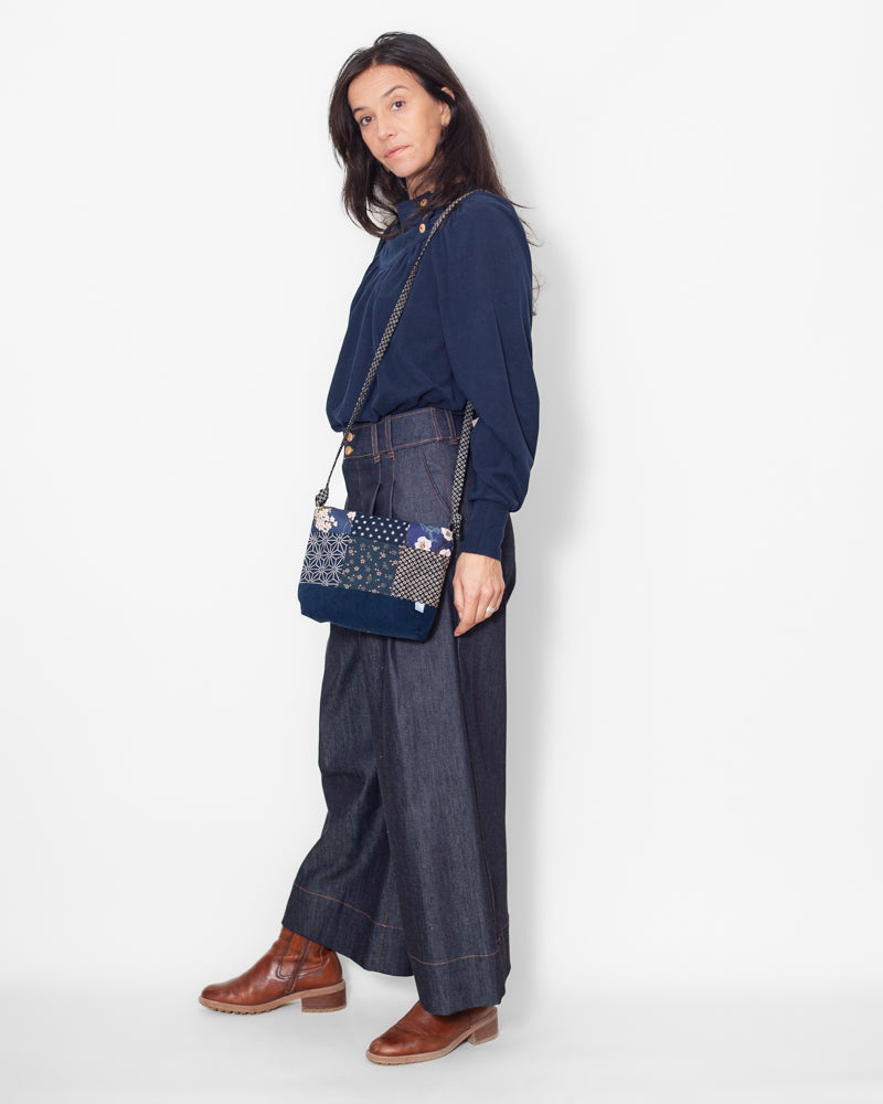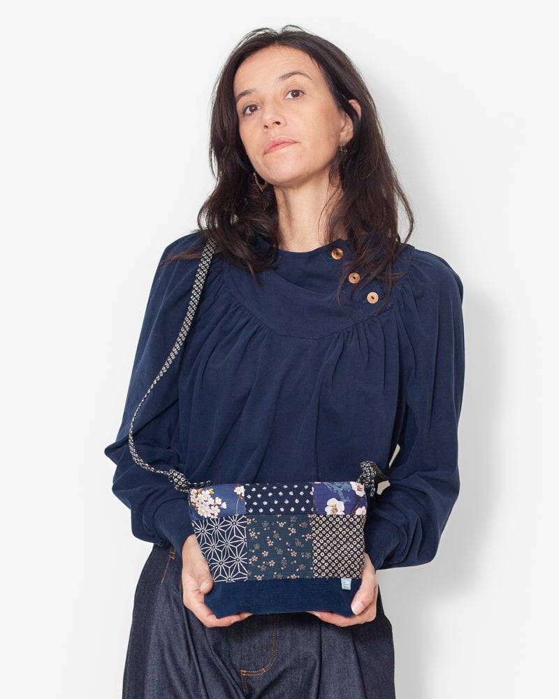 Un sac à main avec une anse longue pour tous les jours ou une soirée. Il est composé de beaux coordonnées japonais et de velours de coton bio.