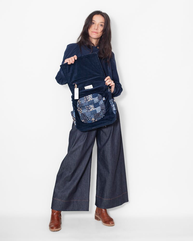 SAC bandoulière VELOURS BIO "Marine" CECILE