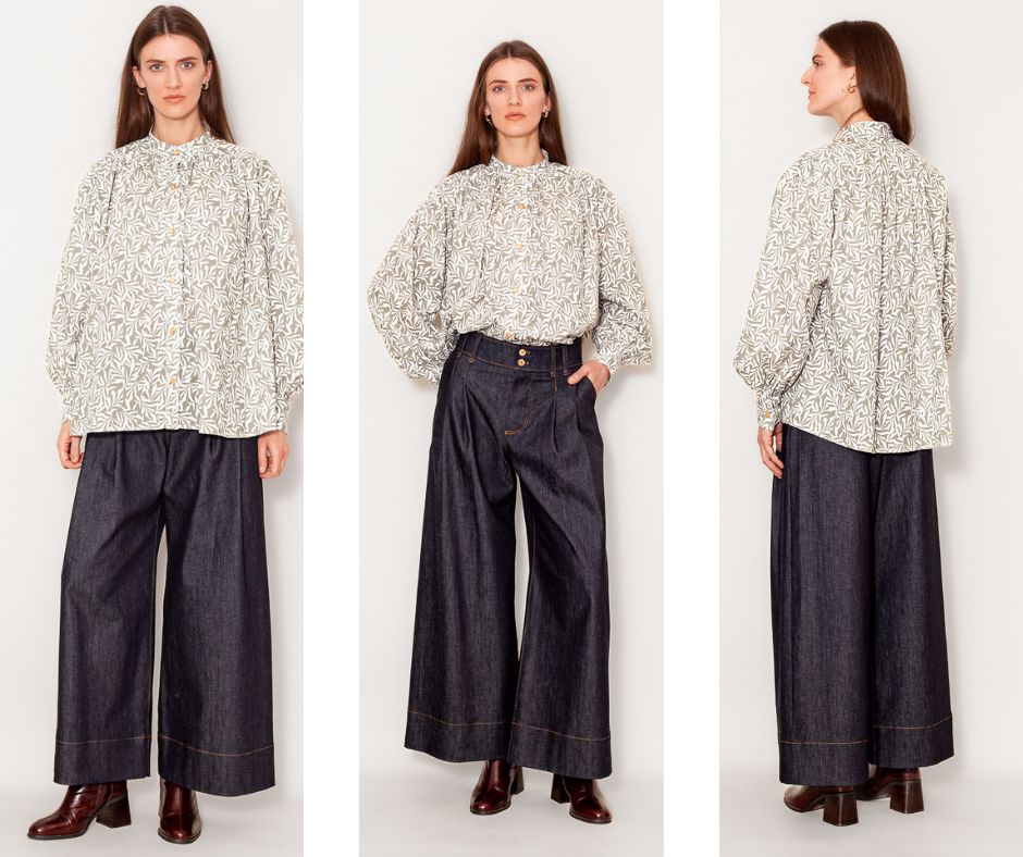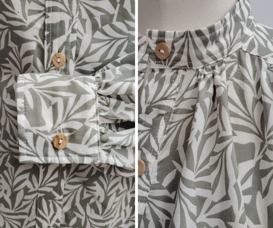 Un col au caractère affirmé, des manches au volume remarquable, et des boutons en bois qui réchauffent l’ensemble.