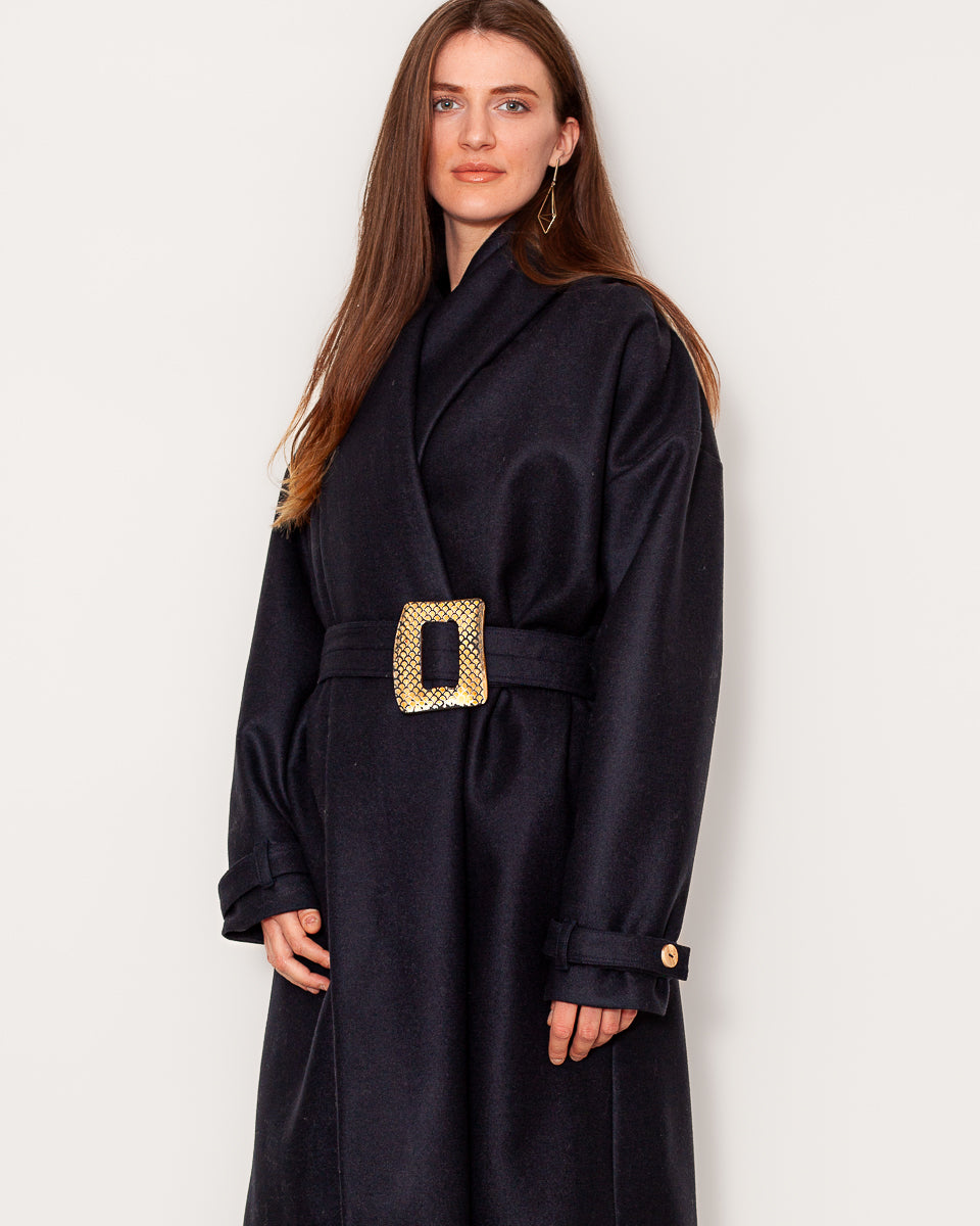 C’est de là qu’est né ce modèle, quelque part entre le trench et le kimono, deux pièces que j’adore pour leur présence, leur ligne et leur façon de structurer la silhouette.