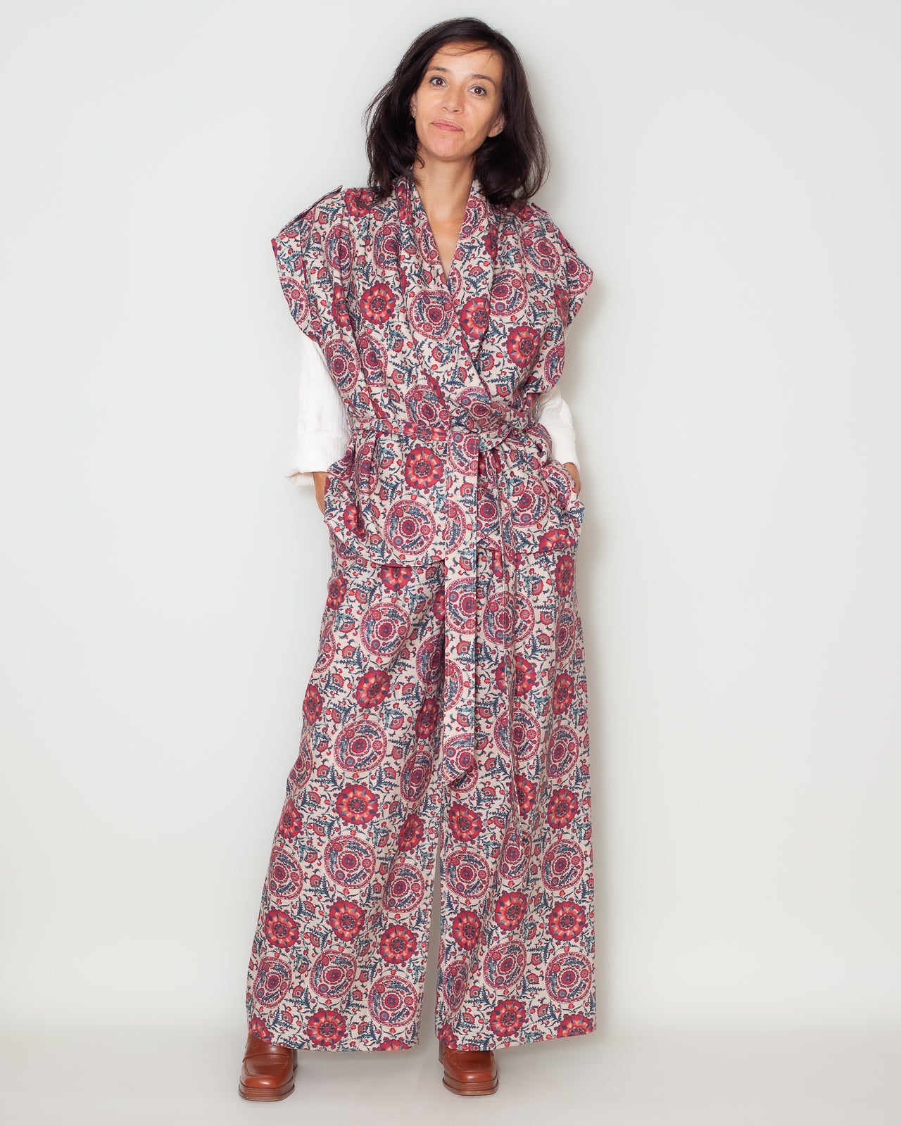 - Les couleurs et motifs : Tons chaleureux avec un imprimé complexe qui deviendra vite une pièce phrase de votre collection perosnnelle
