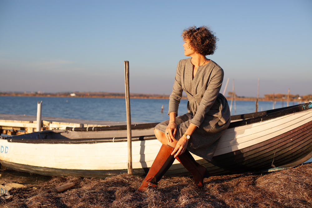 Notre robe Sveti est confectionnée dans une maille Jacquard molletonné Upcyclé de coton viscose et laine avec un motif chevron très doux et chaud. Son jeu de Lyndcee à lavant, me donner stylé élégance une robe pour les journées d'hiver ou une soirée. Elle est extrêmement confortable et chaude.